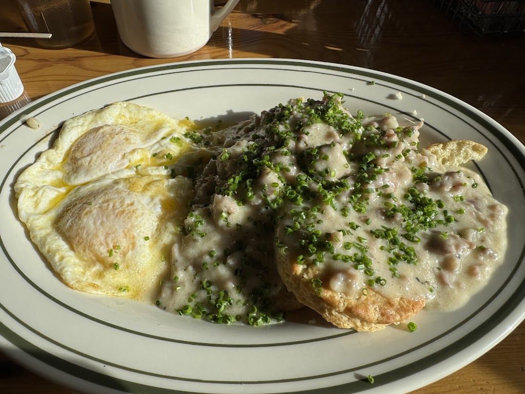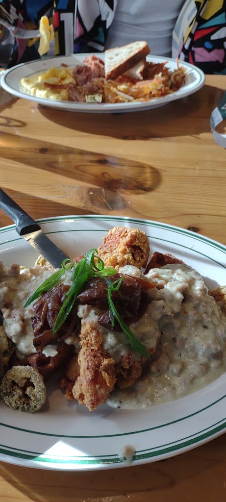 Make sure you bring a sweatshirt or jacket to dine in and eat fast ,very cold in building. Different takes on popular breakfast dishes like country fried steak.