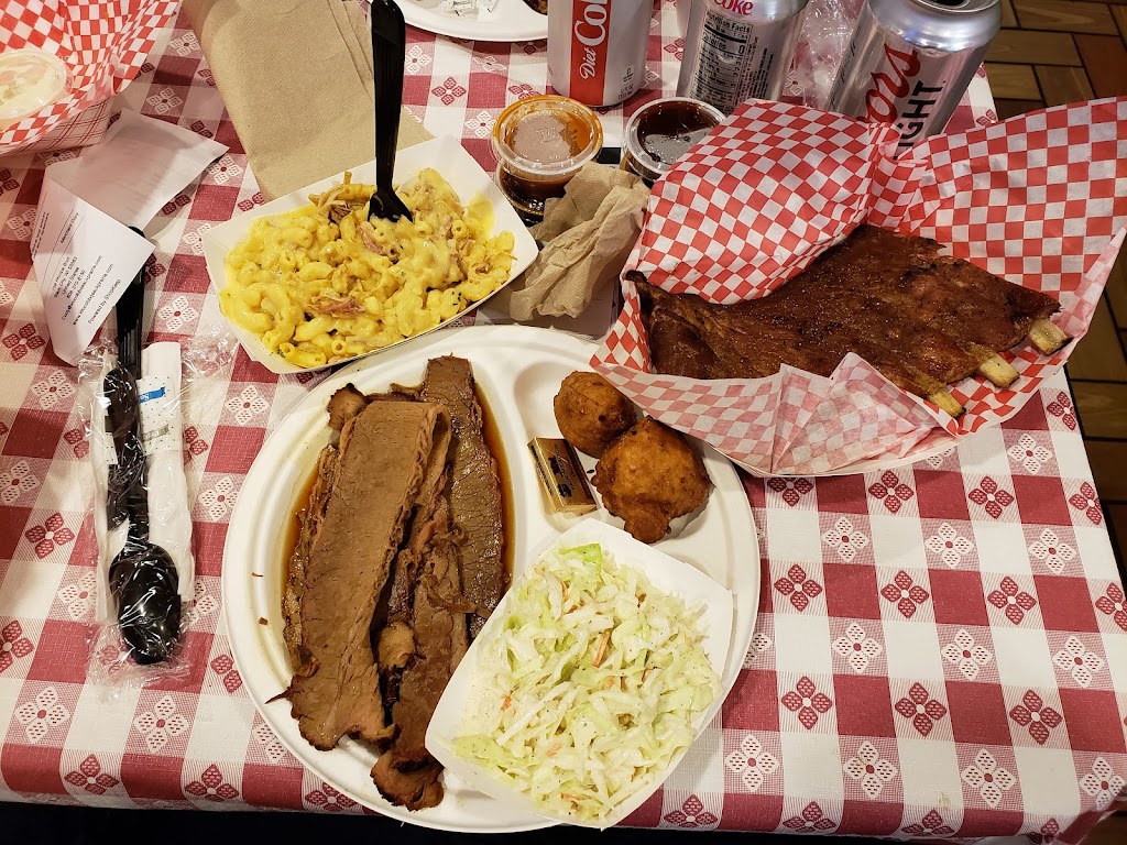Hole in the wall bbq joint that offers daily specials such as bbq meatloaf. I had rib/brisket combo with smoked mac n cheese. The ribs were not my favorite. Very little smoke flavor and rub. They were dried out and the skin was not removed from the rib side. I added the blueberry bbq sauce to moisten and flavor them, that sauce is 5 stars. If you like hot try the hellfire but have a glass of water handy. The cornbread hush puppies were sweet, hot and moist. The mac n cheese was smothered in cheese sauce and pulled pork. Overall good hole in the wall bbq smokehouse.