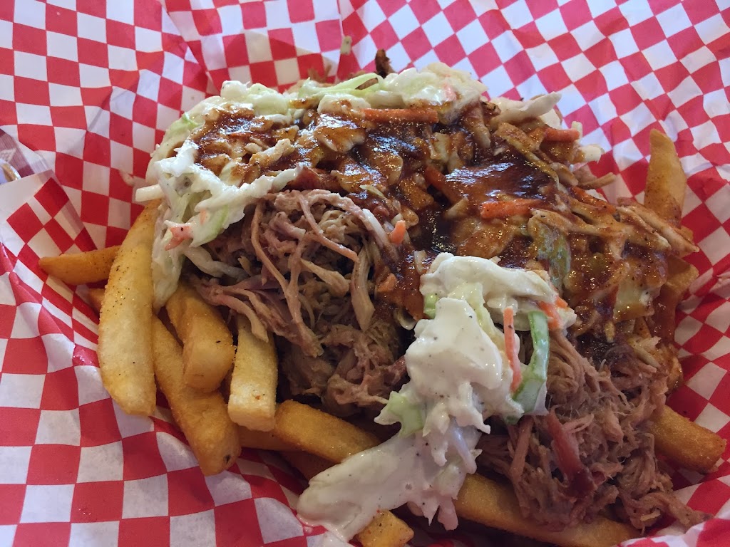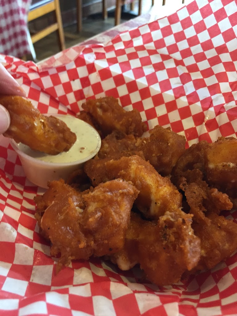 Small dive place, nice staff. The cheese curds are amazing, huge, good batter. Unfortunately we ordered Cajun style, too salty and gross. Order plain they are good as-is. The smoked wings were okay, had a dry rub, again a little over powering with the salt. The BBQ fries were good but the pulled pork was a little muddy, brisket would have been better. The fries were crispy and perfect! Coleslaw totally unnecessary.
