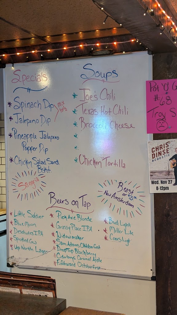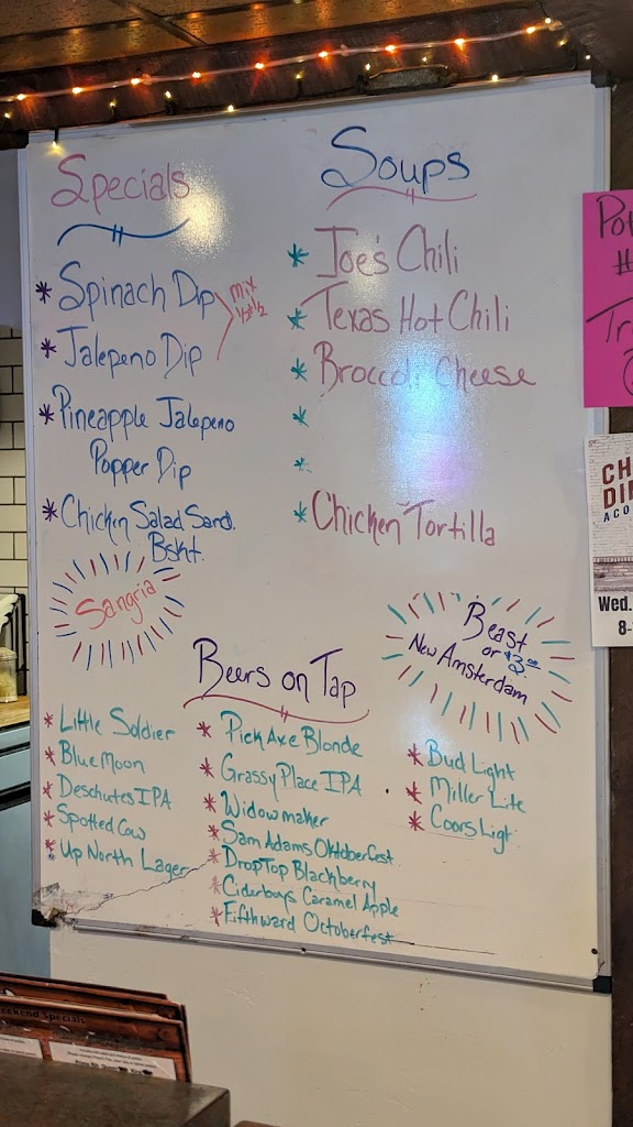Service was great. Burgers were okay. I was not clued in on Hot Texas Chili here means refried beans are the base and just some bits of meat, I was told it was just a thing that has been on the menu and still going after Joe passed. Just know it's more of a bean dip than a chili.