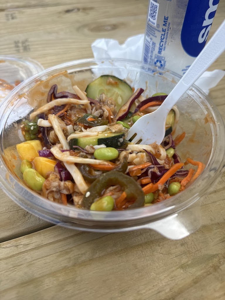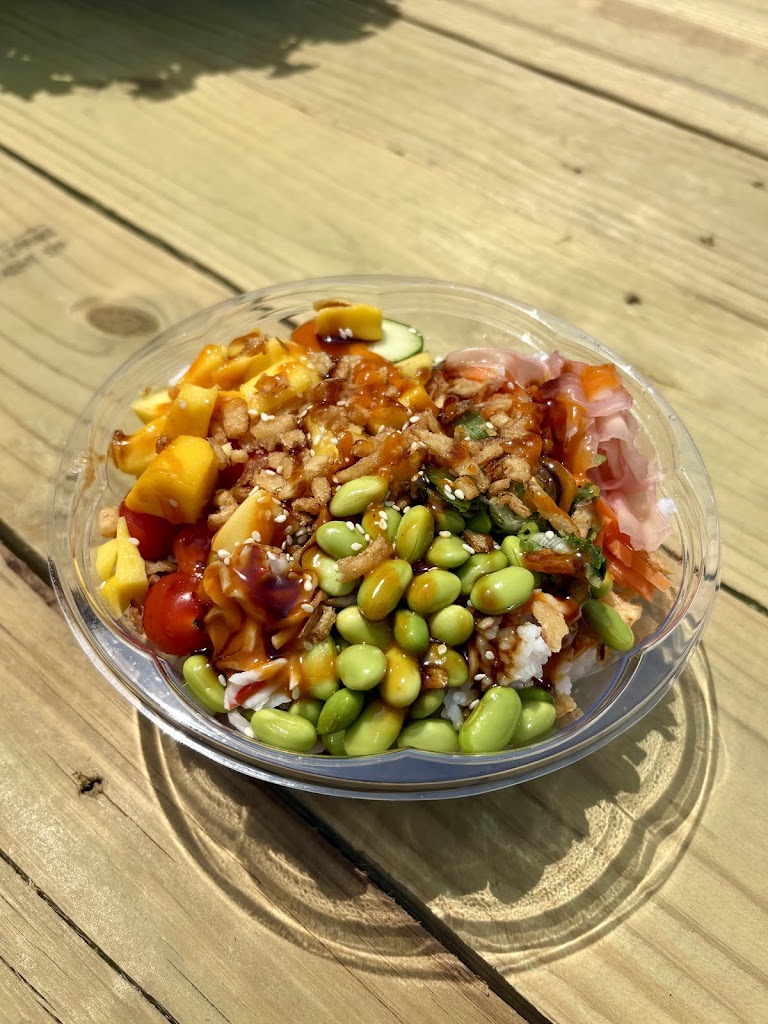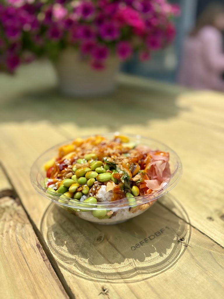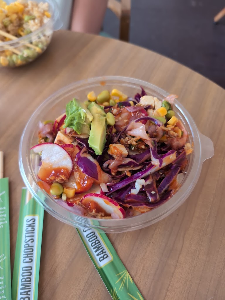 New bowl restaurant with both protein and acai bowls plus boba tea. Choices of tuna, salmon, chicken, and tofu. Rice, rice noodles, cauliflower rice. Numerous veggies and sauces.