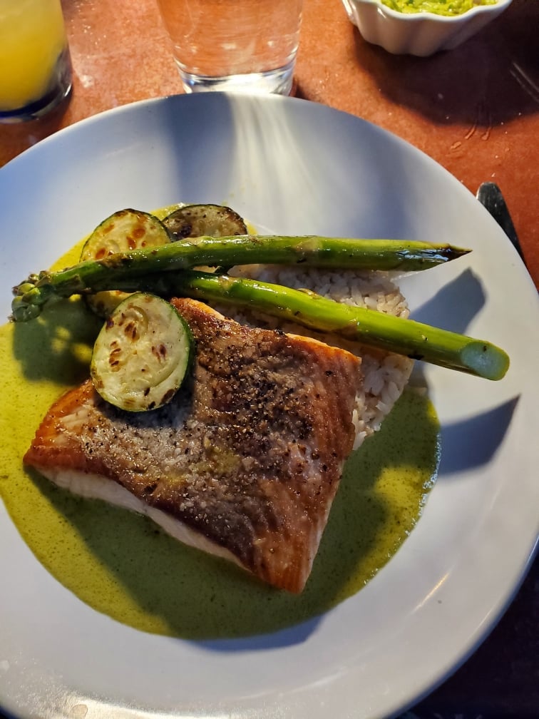 Had an early dinner which was spectacular! We had 3 seafood dishes: Mahi-Mahi, Salmon and Seafood Enchiladas. All were enjoyed- I had the enchiladas which were the best I’ve ever had. The seafood was grilled, then baked into the enchiladas, giving such a an amazing flavor. We’ll be back!