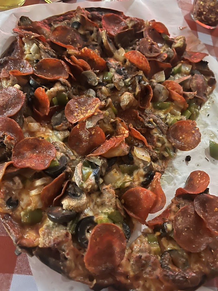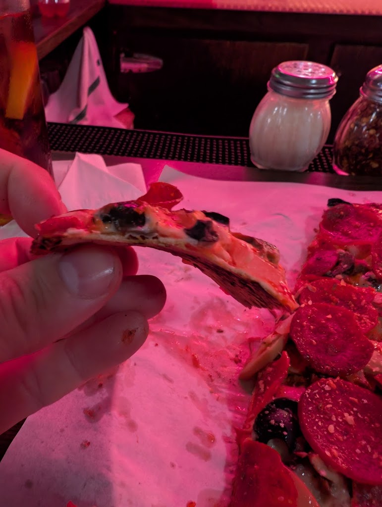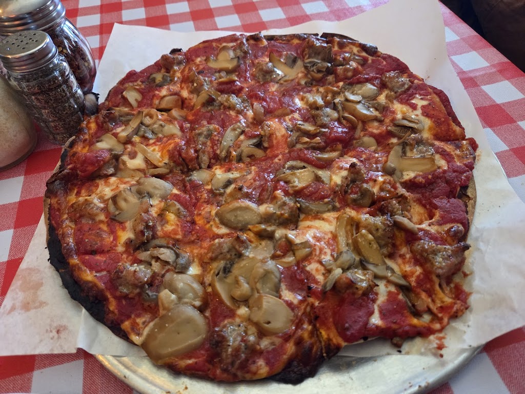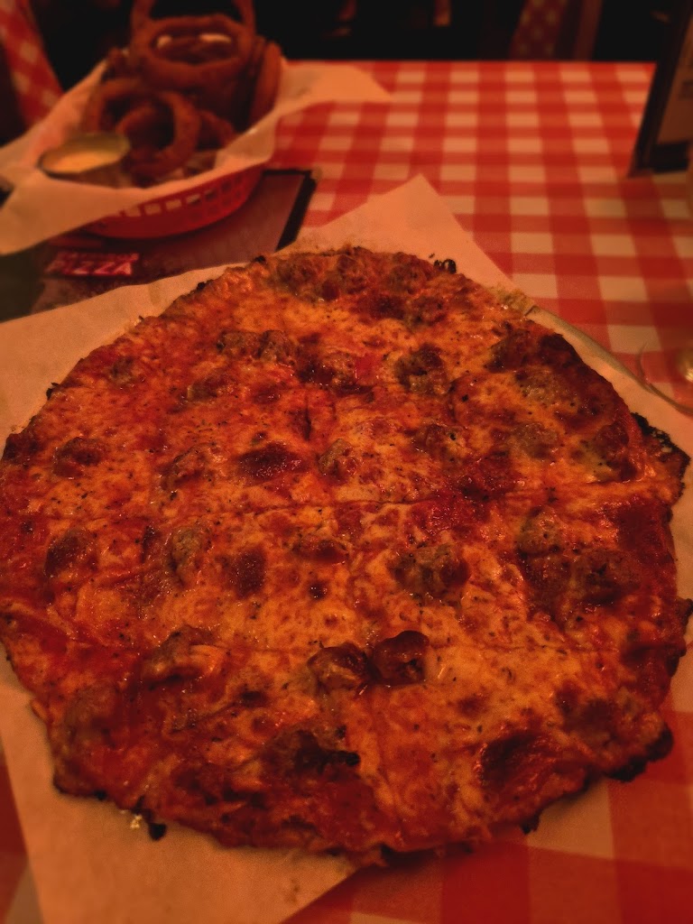 Definitely lives up to the reviews. Thinnest crust I've ever seen on a pizza in my life, and it's perfectly crispy. Loaded with toppings. I might have to drive the 6 hours from my house just to come back here.