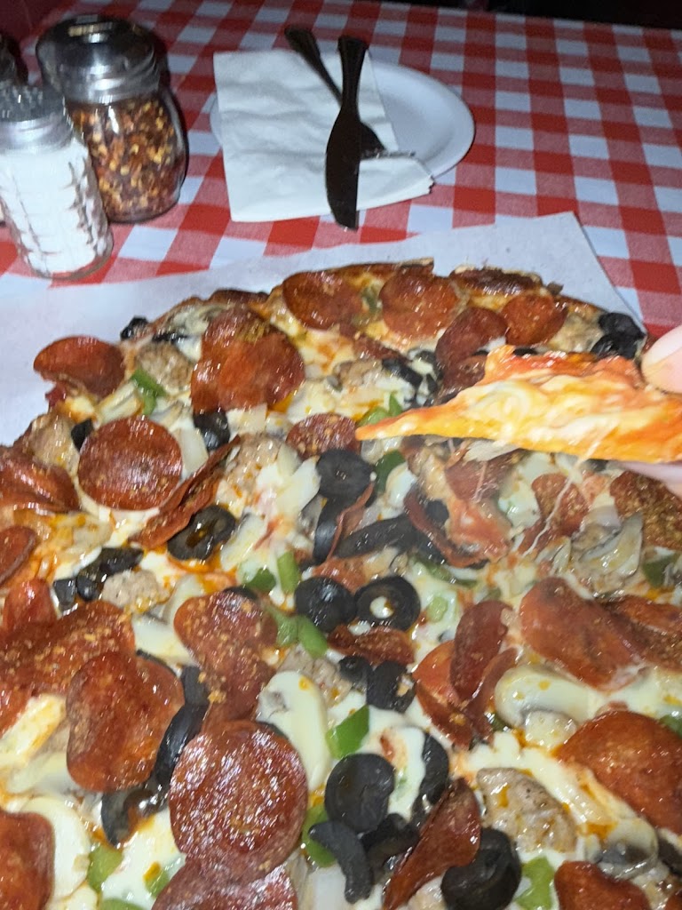 I stopped for pickup and was very pleased with the service, the pizza and the employees who I interacted with during my wait. A no frills, old fashioned atmosphere (In a good way). Next time will definitely try dining in. A thin crust pizza with very generous toppings.