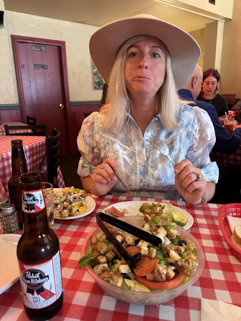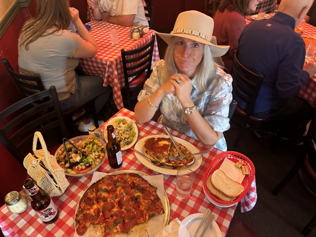 My parents and brother live in the area, but this was my first time. Amazing pizza and salad. Great service and atmosphere!!