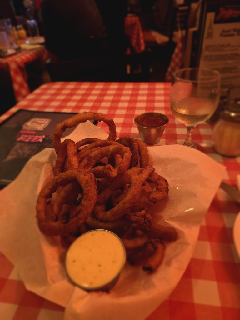 Restaurant was very busy and we were put in a corner and our waitress barely visited us. My husband ended up going to the bar himself to get a second round. Pizza order came out wrong