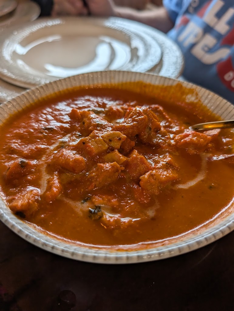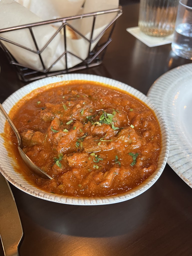 Wow, what an amazing restaurant! We had the Butter Chicken, Vindaloo with goat, and garlic cheese naan. Absolutely delicious! We loved that you could choose your own spice level and the portions were perfect for sharing. We will definitely be back!