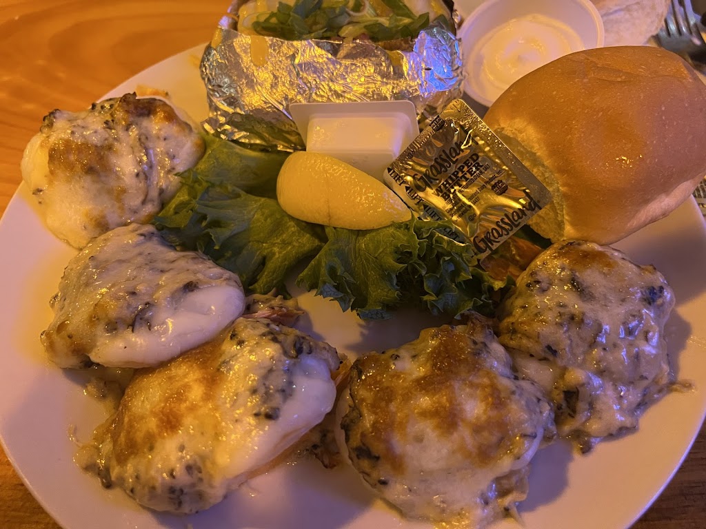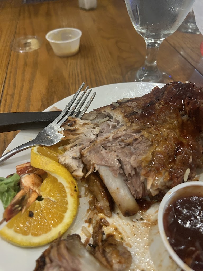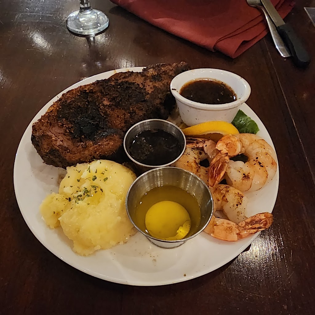 My wife had petite prime rib with 3 grilled shrimp added for additional $10. The prime rib was ok but not wow! like we remembered from years ago. The shrimp was, well, grilled shrimp. No cocktail sauce was offered until we asked.