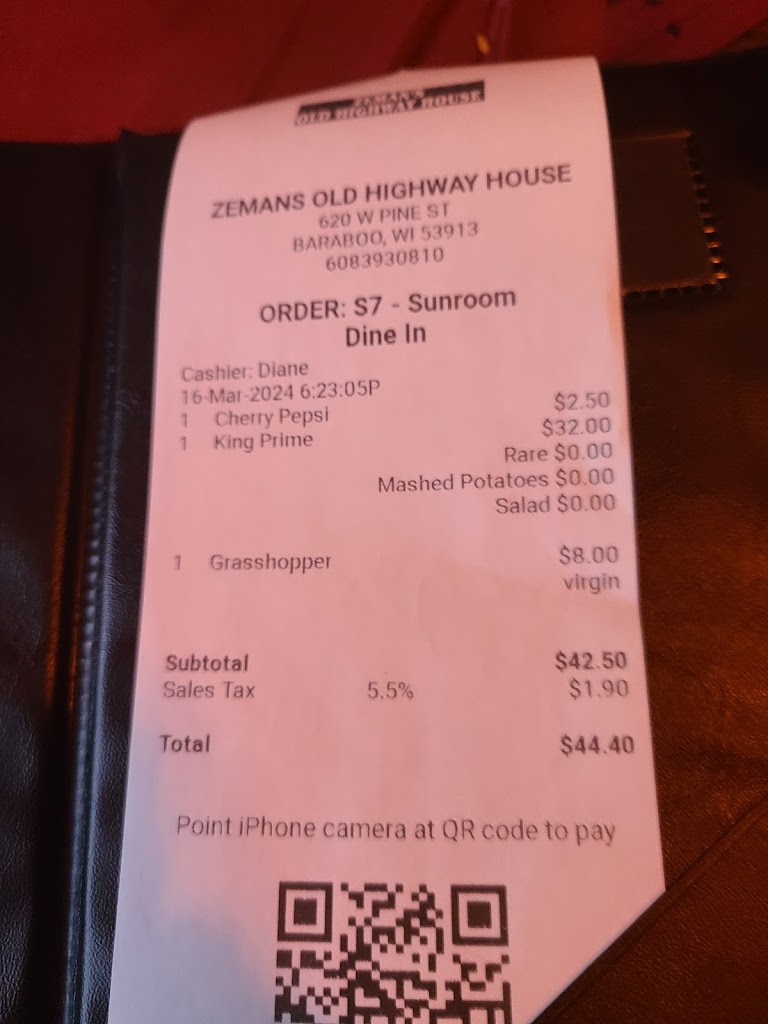My first time eating at Zeman’s Old Highway House. My mom and I decided to try it out. The reviews have been very good on Google and Facebook. We had prime rib sandwich and shared it with a double order of green beans. The dinner was excellent! The prime rib sandwich was so tender and flavorful. Plenty for two people! The green beans are so delicious! We will be back to try Friday night fish fry. Excellent service by our waiter too!