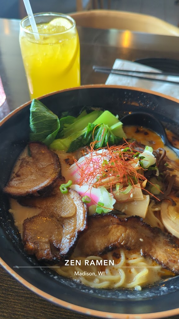 We enjoyed our evening at zen ramen! I had the yuzu ramen which was really good. We wished that there were a beef broth or chicken broth ramen for my partner who doesn't eat pork, but their vegan clear broth was ok. The atmosphere was very cozy and it's nice to finally have ramen on this side of town. There was omurice on special that we were excited to try, but it was off menu for the night when we were there. We hope to try it next time!