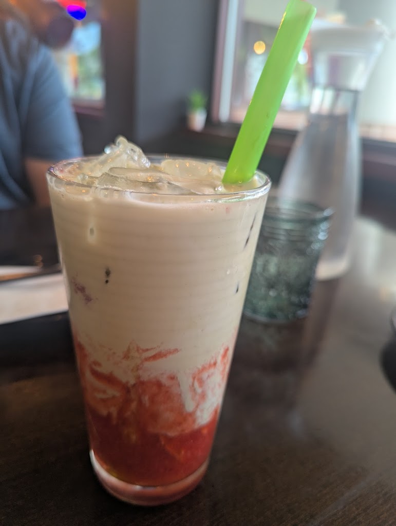 I had the volcano ramen and a strawberry matcha latte. The ramen was perfectly spicy. The pork was tender and flavorful. My favorite part is the marinated egg, so yummy!! The matcha latte was creamy and delicious! We've been here before and will definitely be back!